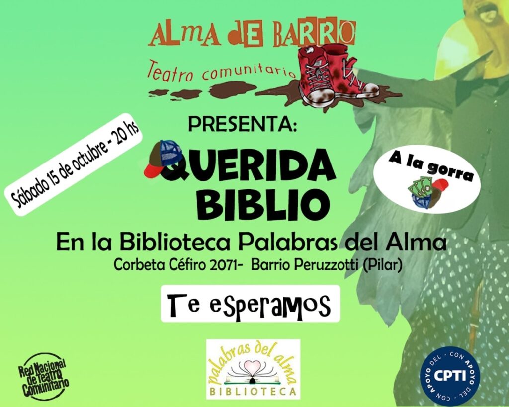 Este sábado 15 de octubre, a las 20 hs. habrá teatro comunitario en la Biblioteca Palabras del Alma (Corbeta Cefiro 2071, Barrio Peruzzotti, Pilar).