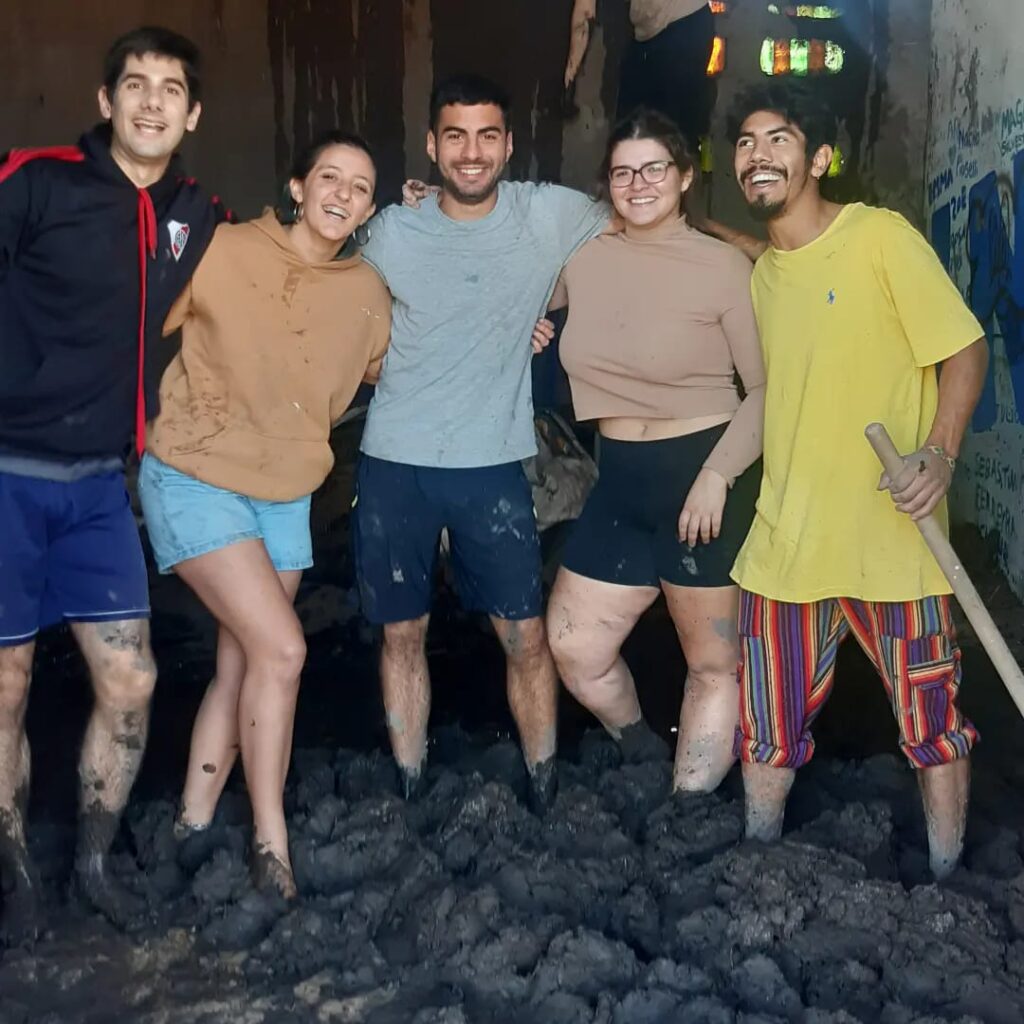 “Hace 40 años empezamos a reconstruir la democracia, que no solamente es votar cada 2 años, también es juntarnos, participar, comprometerse. Hace un año y medio empezamos a construir el primer teatro de barro, de a poco se fueron sumando amigos para llevar adelante la ceremonia”, describe.