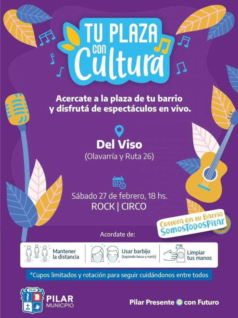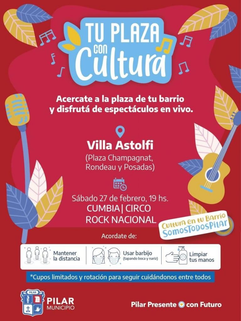 Las actividades organizadas por la Subsecretaría de Cultura de Pilar permiten, desde el mes de enero, disfrutar de espectáculos al aire libre protagonizados por artistas locales de las más variadas disciplinas. Desde ya, son totalmente gratuitos y planificados con todos los protocolos sanitarios vigentes.
