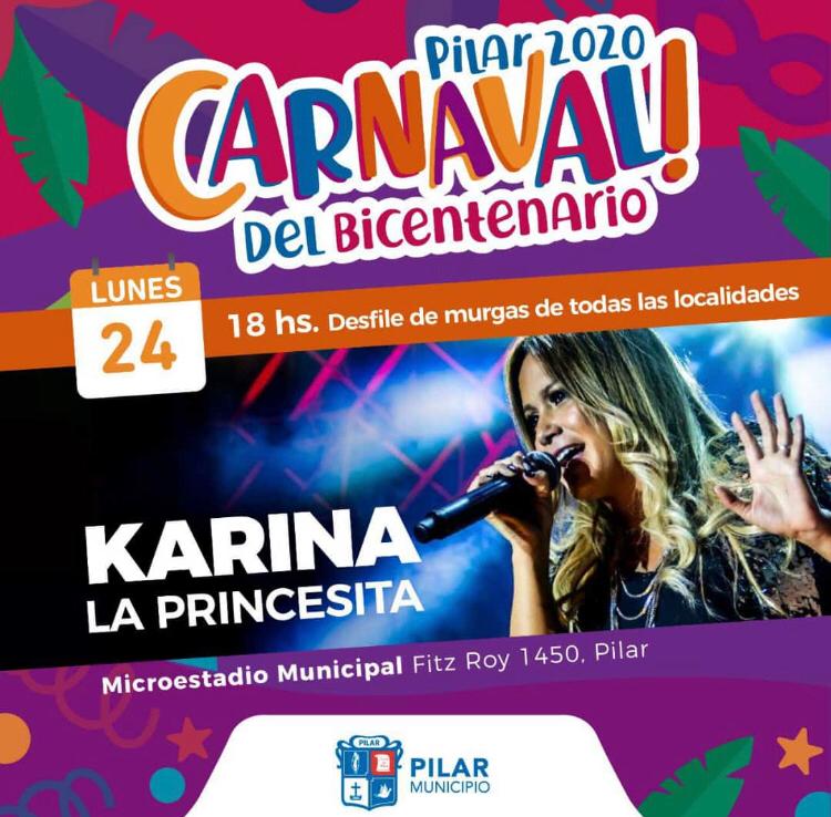 Hoy lunes 24 se presenta Karina, acompañada de murgas locales.