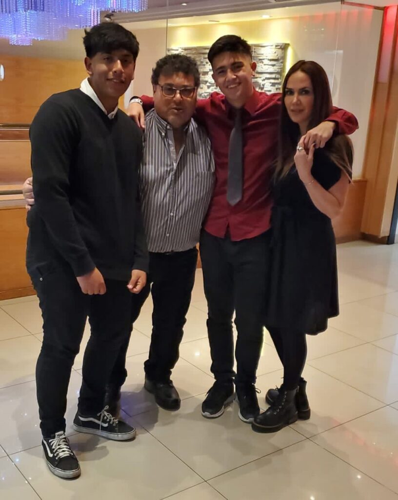 “Nos llevaron como padres responsables”, contó entre risas Mariela Velay. Foto con Gerardo Pacheco, Enzo y Osmary.