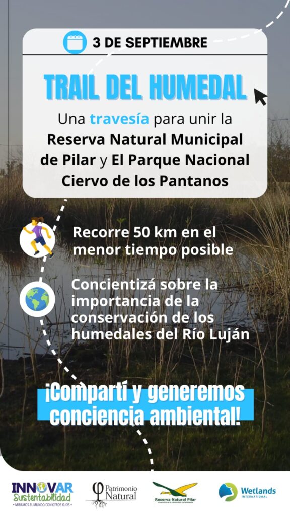 El 3 de septiembre, un grupo de corredores de trail running de Pilar harán una travesía para concientizar sobre la importancia de la conservación de los humedales del Río Luján. El “Trail del humedal” propone unir por tierra, y bordeando el cauce del Río Luján, el Parque Nacional Ciervo de los Pantanos con la Reserva Natural Municipal de Pilar, representando así la importancia de los humedales para todo el ecosistema del conurbano norte ya sea por la capacidad de renovación de las napas de agua de consumo, como la conservación de la biodiversidad y la regulación de las inundaciones en áreas habitadas.