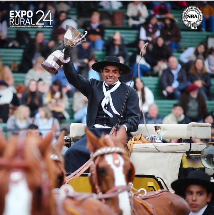 Su nombre es José Rubén Banegas y obtuvo el premio mayor por desfilar con su carruaje en la competencia tradicionalista de elegancia de la Rural de Palermo.