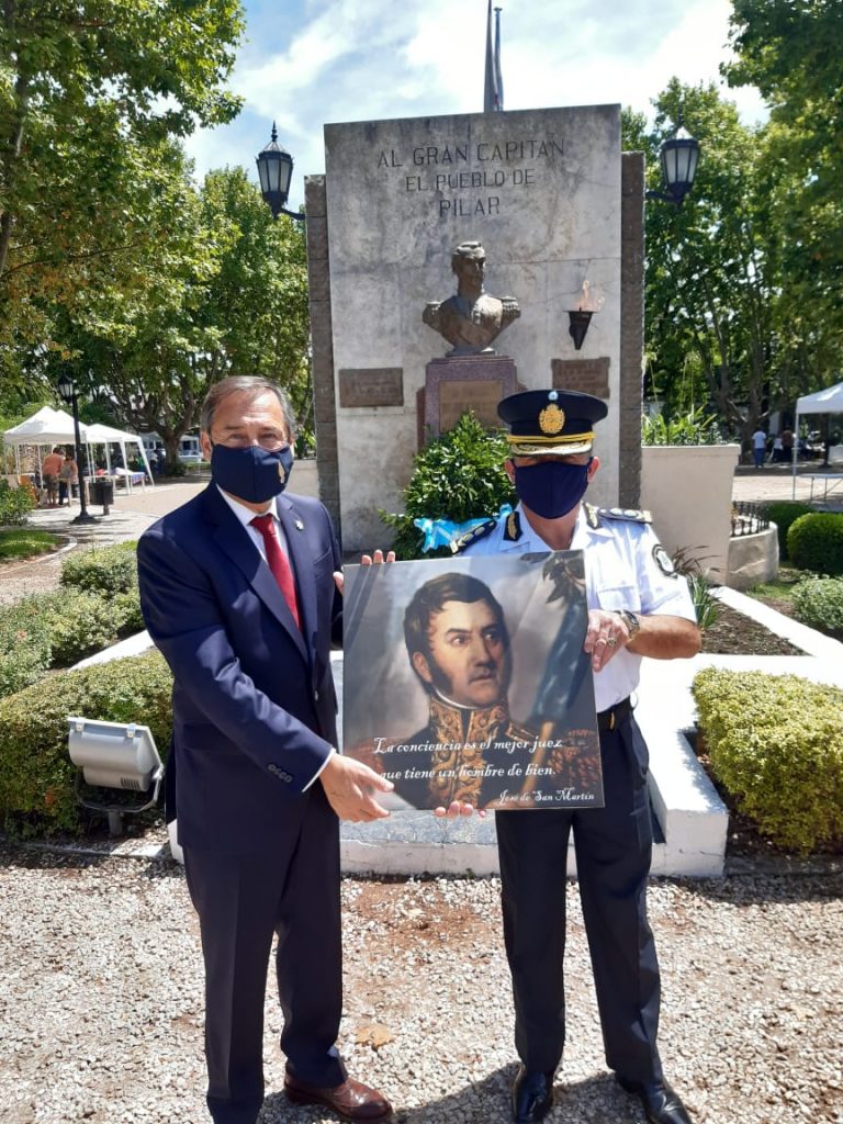 Por su parte, García Caffi enfatizó que “gracias a este municipio por todo lo que puso, a los concejales que decretaron una norma que permite poner en el calendario de Pilar el paso del Libertador, a la asociación de Del Viso, a los amigos que trabajaron durante un largo tiempo para hacer esto posible. Fue desde Del Viso donde nació esta iniciativa, un grupo de vecinos que quiso honrar su memoria. Pueblo y autoridades en mancomunión para un objetivo noble. Hoy ya los combates no son con fusibles ni armas. En el presente nos toca enfrentar una pandemia que mata. Desde el gobierno nacional, provincial y municipal se están poniendo todos los recursos y esfuerzos. Federico así lo está haciendo, para que podamos vencer a este enemigo y con salud logremos recomponer nuestra economía y ser un pueblo feliz. Los convoco a esa epopeya. Así como desde el prisma podemos ver el cruce de Los Andes, también podemos ver los cruces que tenemos por delante y honrar la memoria del Padre de la Patria”.