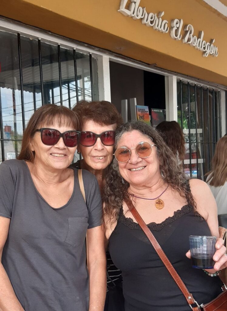 Bety, Vivi y Techi, tres amigas en la Librería El Bodegón donde degustaron unas ricas empanadas de la Tía Mary y el Tío Dick, entre anécdotas, chacareras y rock and roll.
