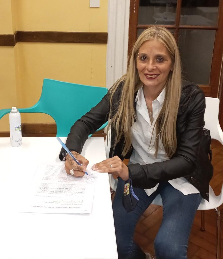 Foto de arriba, parte del equipo del sindicato de Pilar que estuvo en el Ministerio de Trabajo para la firma del acuerdo. Abajo, Gloria Sotar (tesorera) y Nélida Silva (secretaria de Prensa y Propaganda).