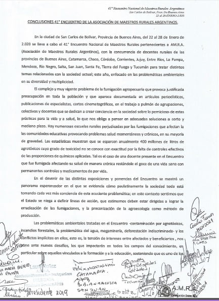 El eje del congreso, entre otros temas que también se abordaron, es la problemática que sufren muchas escuelas rurales con respecto a la fumigación de agrotóxicos como glifosato, un potente veneno extremadamente peligroso para la salud y los ecosistemas, muy usado, según informaron, en las siembras de soja.