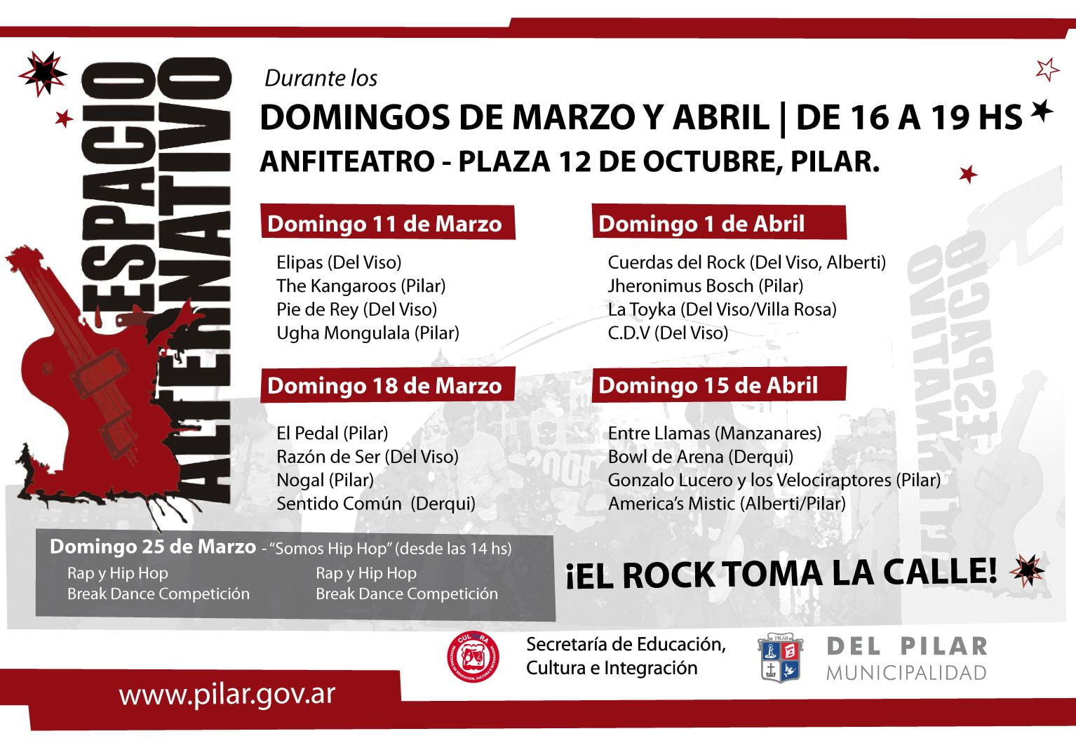 El ciclo continúa el próximo domingo 18 de marzo desde las 16:30 hs., con la actuación de las bandas El Pedal, Razón de Ser, Sentido Común y Nogal.