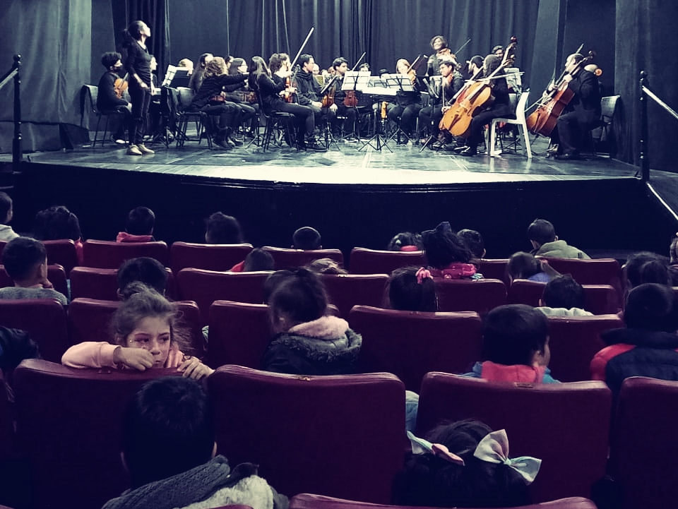 Las y los estudiantes asistieron a un encuentro de «Infancias sinfónicas», un concierto didáctico en el que aprendieron cómo funciona una orquesta, cuáles son los instrumentos musicales que la integran, y también disfrutaron canciones infantiles en versiones orquestales.