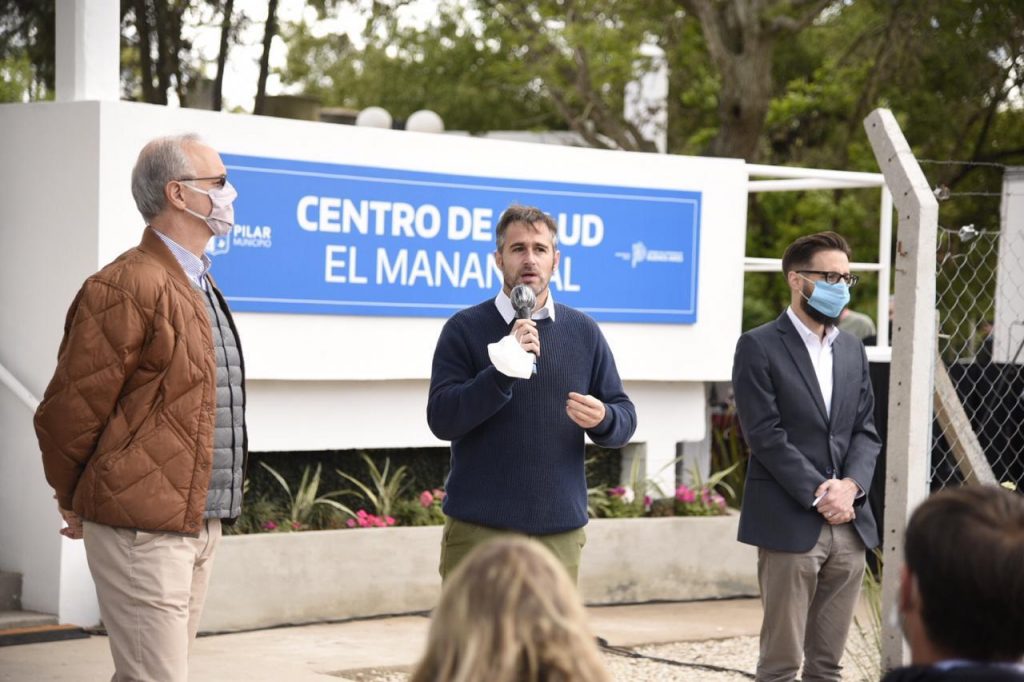 El intendente Federico Achával inauguró hoy un nuevo Centro de Salud, ampliando así el acceso a este derecho para los pilarenses, esta vez en el barrio El Manantial, y junto al ministro de Salud bonaerense, Daniel Gollán, y el ministro de Infraestructura y Servicios Públicos de la Provincia, Agustín Simone.