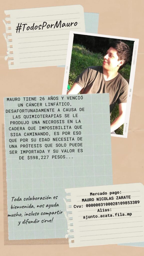 Dejamos a continuación la cuenta de Mercado Pago de MAURO NICOLÁS ZARATE para que quienes deseen ser parte de esta noble campaña, puedan hacer su aporte: