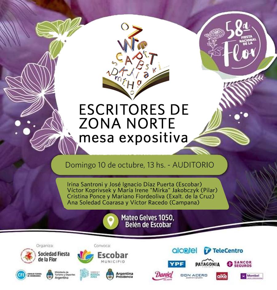 El evento que formaba parte de la 6º Feria del Libro de Escobar se reprogramó para este domingo 10 de octubre, 13 hs en el auditorio de la Fiesta Nacional de la Flor (Mateo Gelves 1050, Belén de Escobar).