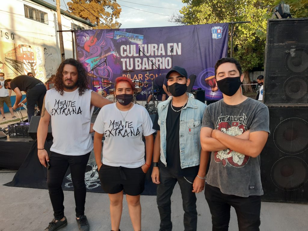 El último sábado de febrero la localidad de Del Viso vivió una tarde de Corredores Culturales en la cortada de Olavarría y Ruta 26, ese día, entre otras presentaciones, subió al escenario una banda de hard rock interbarrial, Mente Extraña, integrada por Karen (batería), Damián (guitarra y voz), Gabriel (guitarra) y José (coro y bajo), jóvenes músicos que vienen desde hace un par de veranos haciendo sus propios temas y al momento de volver a un escenario hacía, exactamente, un año que no tocaban en público.