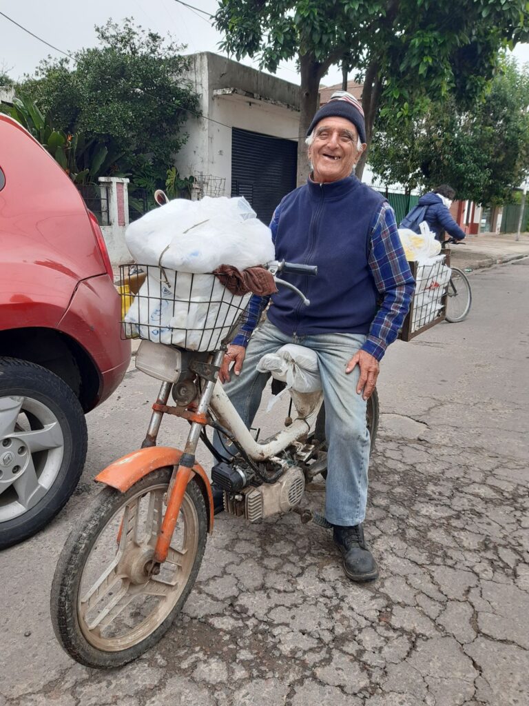 Don Emilio Madroñal recorre Derqui vendiendo bolsas de nylon al comercio local. Es muy conocido el hombre.