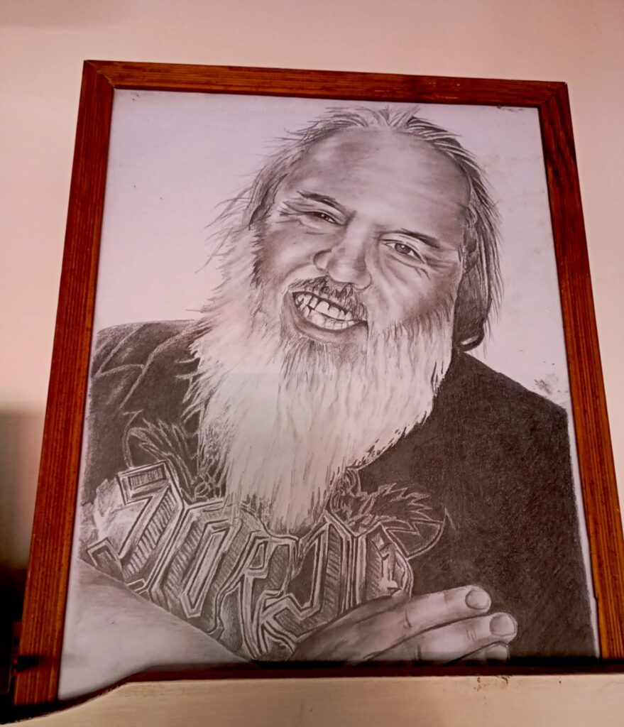 Adriana Rodríguez hizo un retrato de Jorge Ojeda que está en la Librería El Bodegón, en La esquina de las letras (San Martin e Iparraguirre).