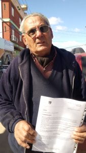 “Sucede que me sacaron la parada y no la volvieron a poner, tengo el cartel en mi casa, cuando hicieron la ruta lo dejaron tirado en el piso”, confiesa angustiado.