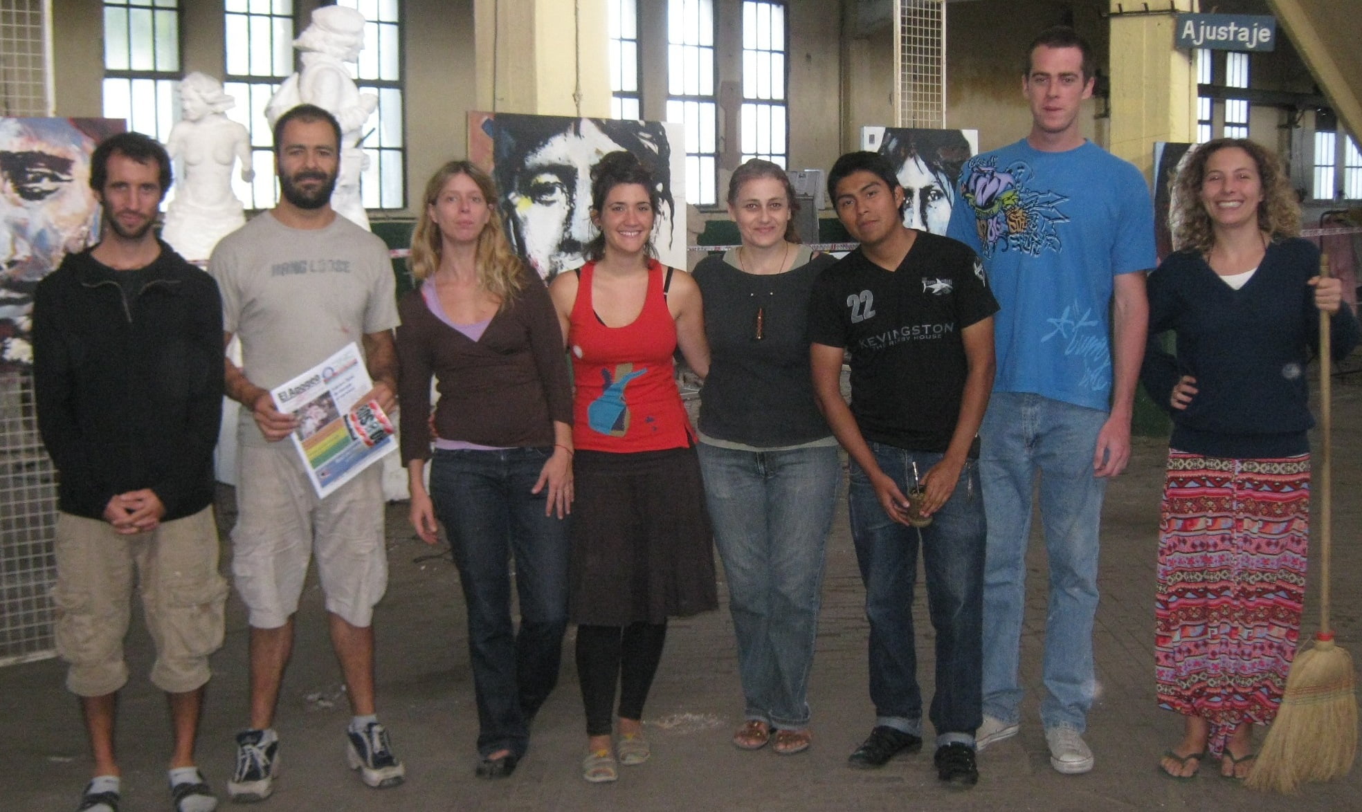 “En total somos como 200, no es un escultor que está haciendo un monumento, nos prestaron el galpón a un movimiento de personas que vamos a hacer un montón de cosas acá adentro”, dice entre tablones y cuadros.