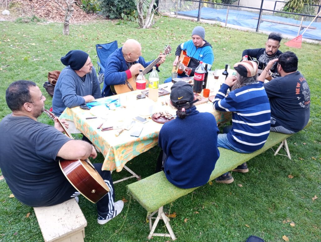 Una juntada de amigos músicos donde confluyeron varias generaciones con sus guitarras. Asado, zapada y reflexión en la quinta de don Osvaldo Tejeda.