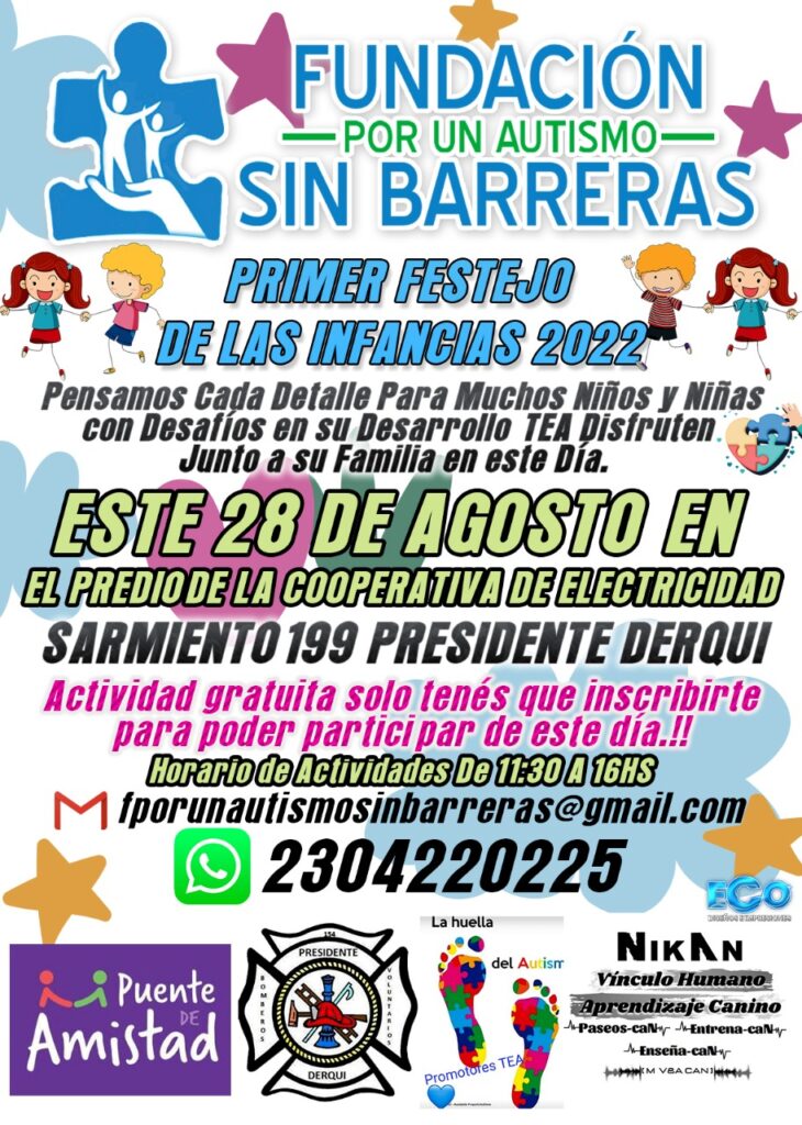La Fundación por un Autismo sin barreras prepara un encuentro que se llevará adelante el próximo domingo 28 de agosto en el predio de la cooperativa telefónica de Presidente Derqui, en Sarmiento 199.