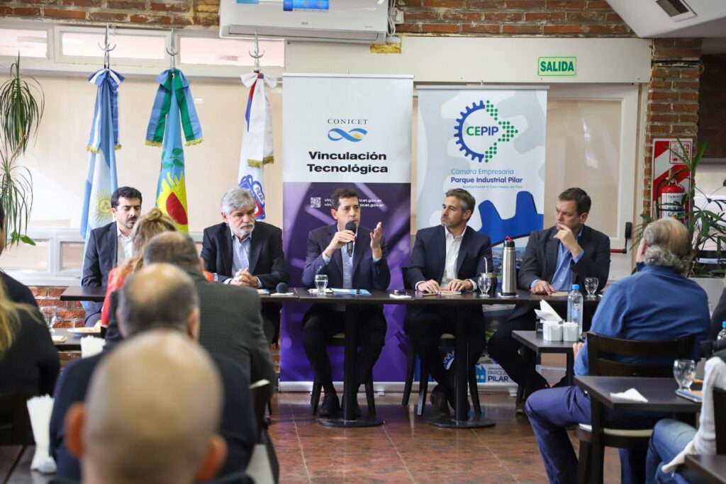 El intendente Federico Achával estuvo presente en la jornada “Ciencia e Industria: el potencial de la vinculación tecnológica y la innovación”, de la que participaron los ministros del Interior, Eduardo «Wado» De Pedro, y de Ciencia, Tecnología e Innovación, Daniel Filmus, investigadores del CONICET y empresarios, en el Parque Industrial. Allí se conversó sobre la importancia de la articulación entre el Estado y el sector privado, así como de las oportunidades que se pueden generar partir del conocimiento en ciencia y tecnología.