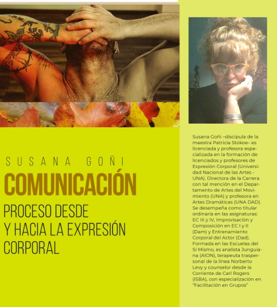 Susana Goñi es licenciada y profesora especializada en la formación de licenciados y profesores de Expresión Corporal (Universidad Nacional de las Artes – UNA).