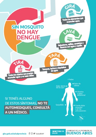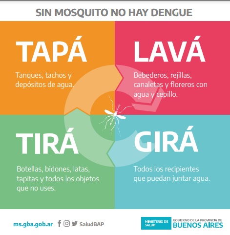 Evitar las picaduras de mosquitos usando ropa de manga larga y colores claros en lo posible, utilizando repelente sobre la piel expuesta, colocando espirales o tabletas en los ambientes y cubriendo con tules o telas mosquiteras ventanas, puertas, cochecitos de bebés y cunas.