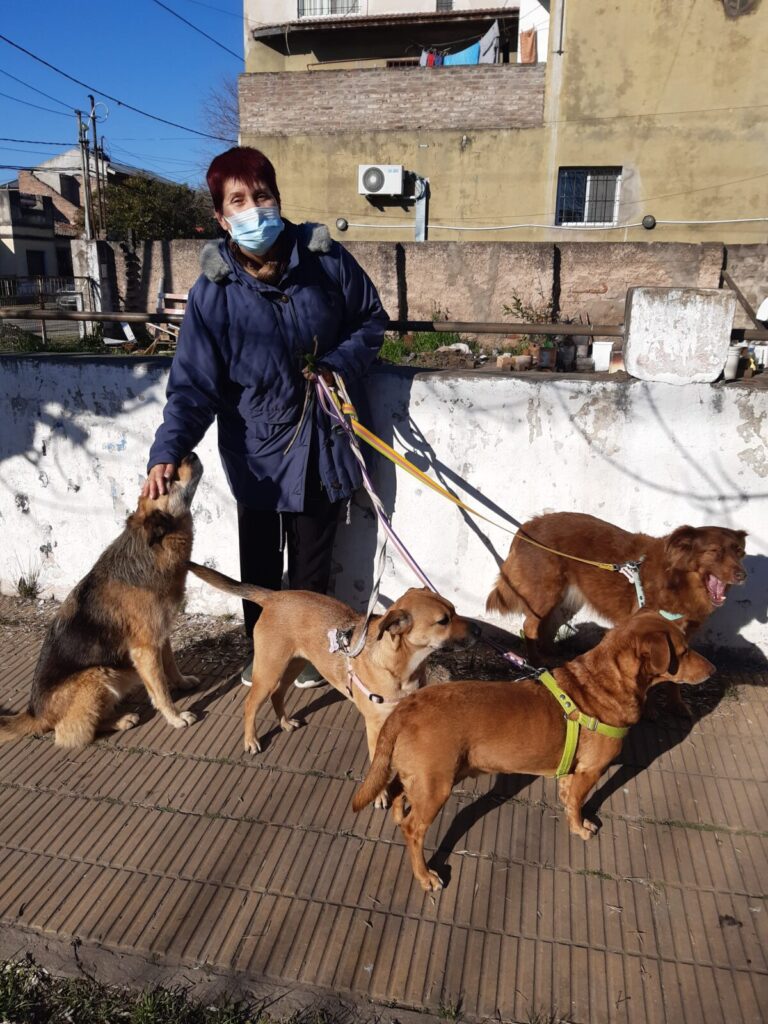 “Son re fieles, lo bueno es que también hago ejercicio, todos los días tengo que sacarlos a pasear, así que imaginate”, cuenta la vecina rodeada de sus grandes compañeros.
