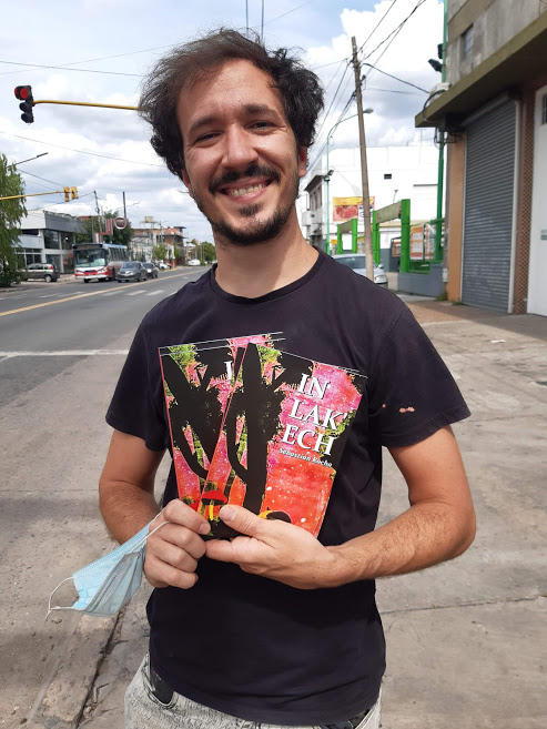 “Antes que nada quiero que sepan: mi poesía no es lo que ustedes leen, no es lo que oyen. Mi poesía es lo que pasa con ella. Si cierran el blog y vuelven al muro, eso es poesía; si los muros suman cada vez más ladrillos, mi poesía es la arena que el cemento trae. Lo que hago con este verso es perpetuar lo efímero. Mi poesía es la bronca reciclada, el sentido bien utilizado y lo que vos hacés con esto. Si es que estás leyendo, oyendo o soñando. La poesía es eso”, describe en la contratapa de In Lak’ech su primer libro, que se presentará esta misma tarde a las 19 hs. por la aplicación de Zoom a través de la Librería Virtual de El Bodegón Ediciones.