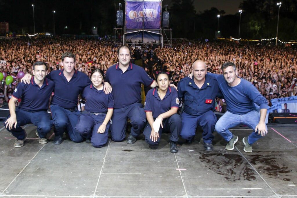 En un emotivo momento, el intendente Federico Achával reconoció sobre el escenario de la última noche de los carnavales en el Microestadio Municipal, a los cinco bomberos voluntarios de Pilar que viajaron a Corrientes para combatir los incendios.