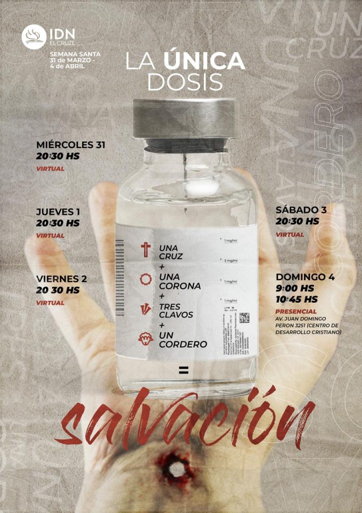 La Iglesia Nazareno ubicada en el Cruce Derqui, se prepara para llevar adelante una Campaña en Semana Santa que lleva como nombre LA ÚNICA DOSIS, donde compartirán por qué la obra de Jesús en la Cruz es única y suficiente para quienes creen y se entregan Él.