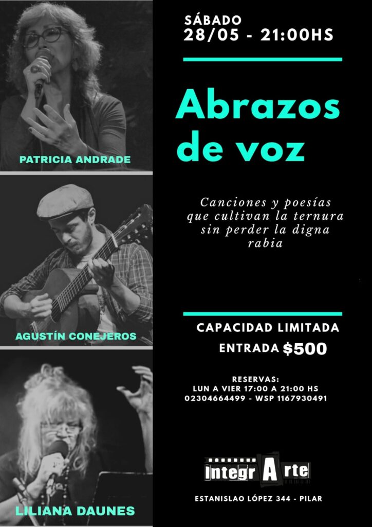El próximo sábado 28 de mayo a las 21 hs. el Centro Cultural Integrarte Pilar abrirá sus puertas para recibir “canciones y poesías que cultivan la ternura sin perder la digna rabia”.
