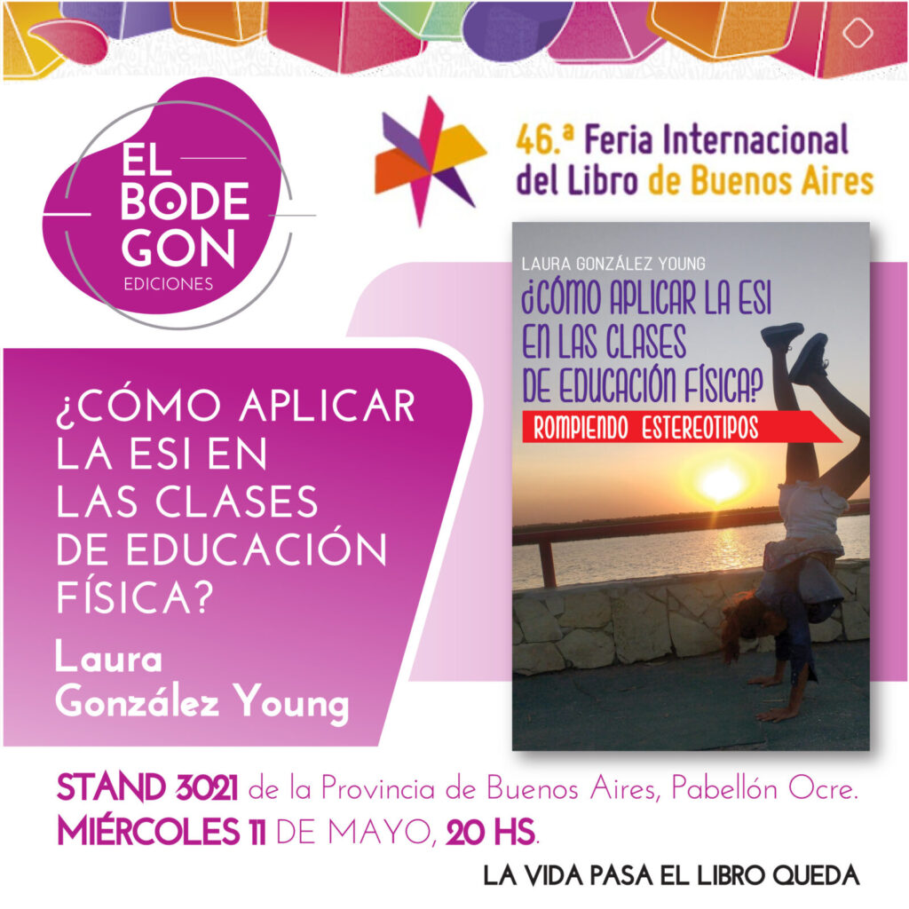 -Miércoles 11 de mayo, 20 hs.: se presentarán en la actividad LA VIDA PASA EL LIBRO QUEDA, organizada por la editorial local El Bodegón Ediciones, los siguientes libros: Naderías (Koprivsek-Touceda-Venier); Pilar, un libro de historias (Abrate-Lafourcade); ¿Cómo aplicar la ESI en las clases de Educación Física? (Laura González Young); Perdón por la poesía (Bonfiglio-Labale-Varrela-Girardon-Sosa-Herrera-Vergani-Palermo); Para siempre es mucho tiempo (Noelia Venier). Stand 3021 de la Provincia de Buenos Aires, Pabellón Ocre.
